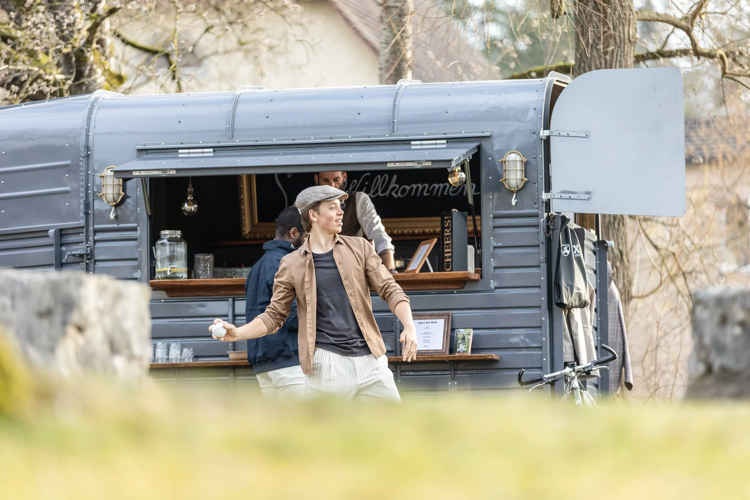 Barbetrieb, coole Drinks von Kim Hütter mit «Die Story vom Pferd». DJ und Bowls von kleiner dicker Junge.